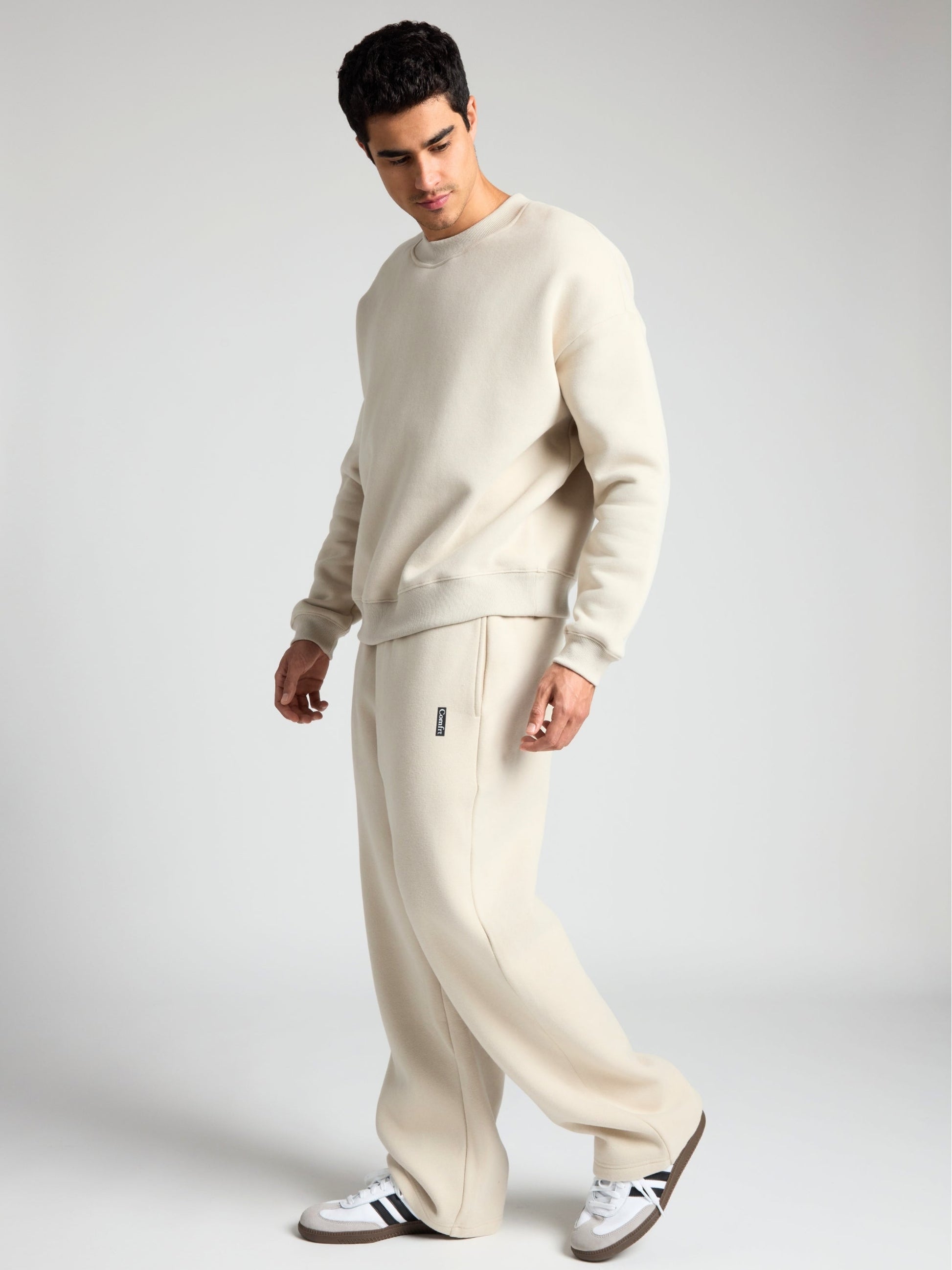 The most comfortable sweatshirt you’ll ever own. Crafted from our signature Super Soft Combed Cotton Blend, it features a relaxed fit with dropped shoulders and a clean, straight cut from shoulder to waist. Designed to hit at or just below the waist for everyday ease. Each sweatshirt is enzyme washed for a lived-in softness that only gets better with time. Finished with an embossed Comfrt logo at the back neck for a subtle, elevated detail.
